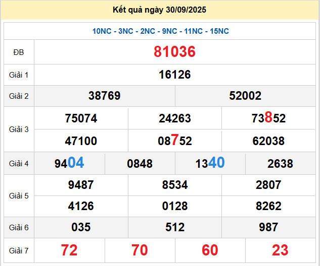 Các số đề chính xác đã ra được in màu ĐỎ – tính từ 01-10-2025