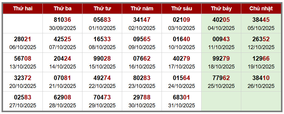 Các số đề chính xác đã ra được in màu ĐỎ – tính từ 01-11-2025