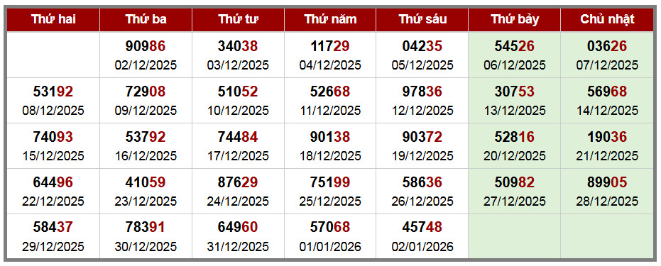 Các số đề chính xác đã ra được in màu ĐỎ – tính từ 01-01-2026