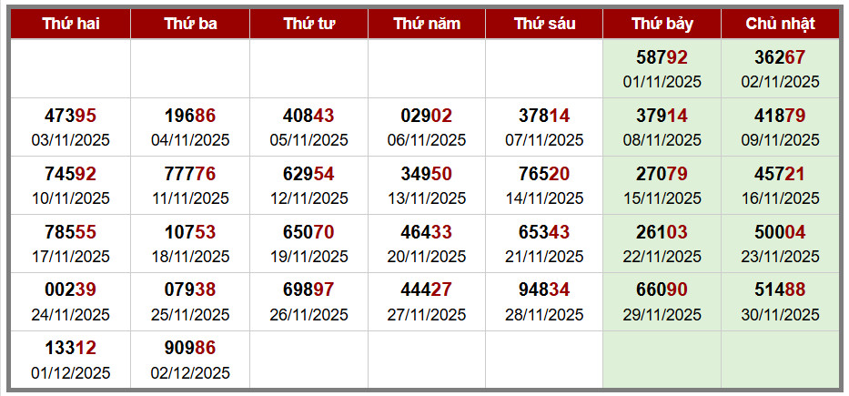 Các số đề chính xác đã ra được in màu ĐỎ – tính từ 01-12-2025