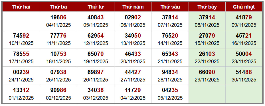 Các số đề chính xác đã ra được in màu ĐỎ – tính từ 01-12-2025