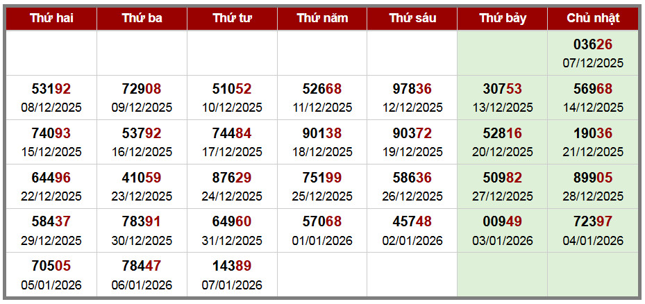 Các số đề chính xác đã ra được in màu ĐỎ – tính từ 01-01-2026