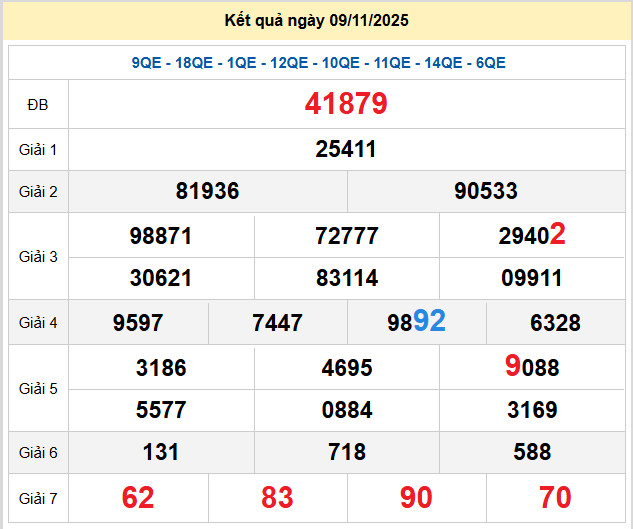 Các số đề chính xác đã ra được in màu ĐỎ – tính từ 01-11-2025