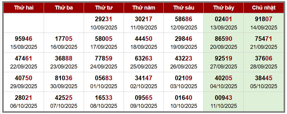 Các số đề chính xác đã ra được in màu ĐỎ – tính từ 01-10-2025