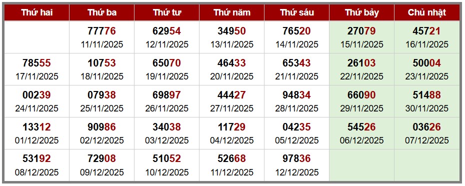 Các số đề chính xác đã ra được in màu ĐỎ – tính từ 01-12-2025