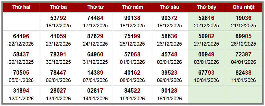Các số đề chính xác đã ra được in màu ĐỎ – tính từ 01-01-2026