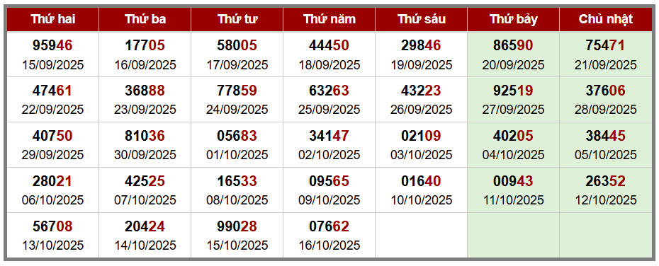 Các số đề chính xác đã ra được in màu ĐỎ – tính từ 01-10-2025