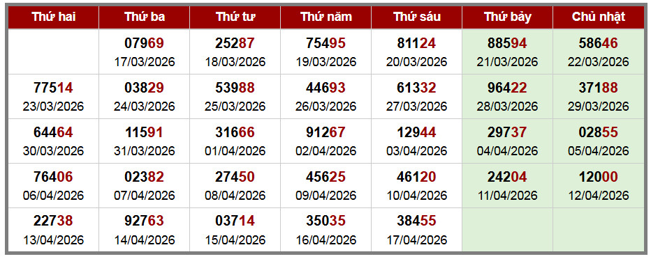 Các số đề chính xác đã ra được in màu ĐỎ – tính từ 01-04-2026