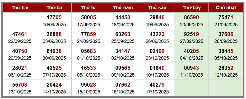 Các số đề chính xác đã ra được in màu ĐỎ – tính từ 01-10-2025