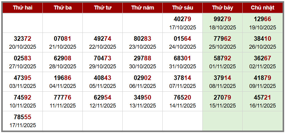 Các số đề chính xác đã ra được in màu ĐỎ – tính từ 01-11-2025