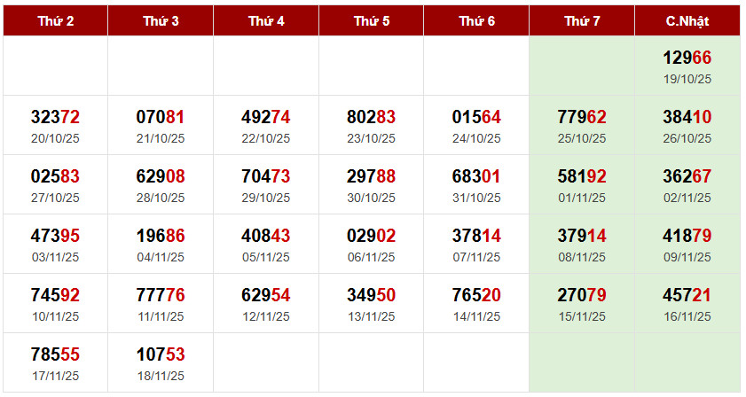 Các số đề chính xác đã ra được in màu ĐỎ – tính từ 01-11-2025