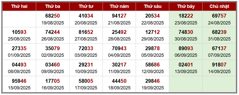 Các số đề chính xác đã ra được in màu ĐỎ – tính từ 01-09-2025