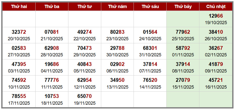 Các số đề chính xác đã ra được in màu ĐỎ – tính từ 01-11-2025