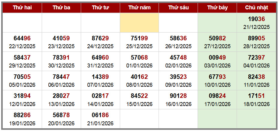 Các số đề chính xác đã ra được in màu ĐỎ – tính từ 01-01-2026