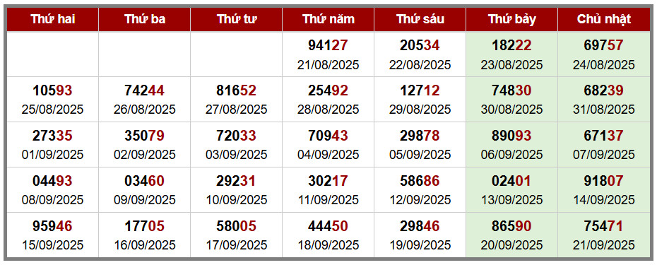 Các số đề chính xác đã ra được in màu ĐỎ – tính từ 01-09-2025