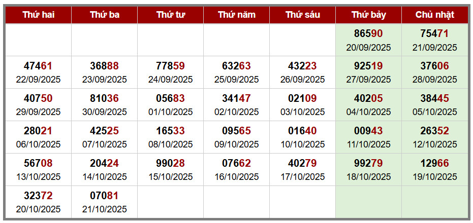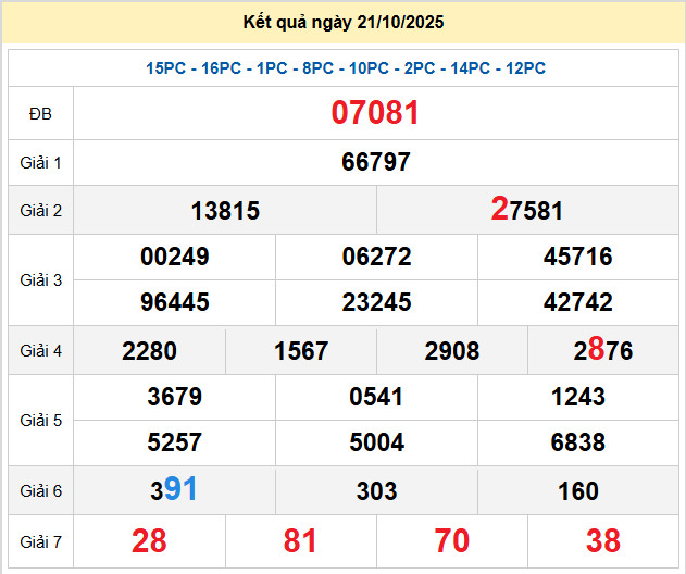 Các số đề chính xác đã ra được in màu ĐỎ – tính từ 01-10-2025