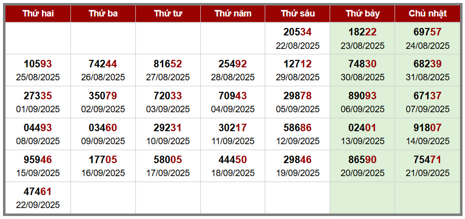 Các số đề chính xác đã ra được in màu ĐỎ – tính từ 01-09-2025