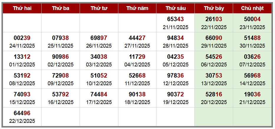 Các số đề chính xác đã ra được in màu ĐỎ – tính từ 01-12-2025