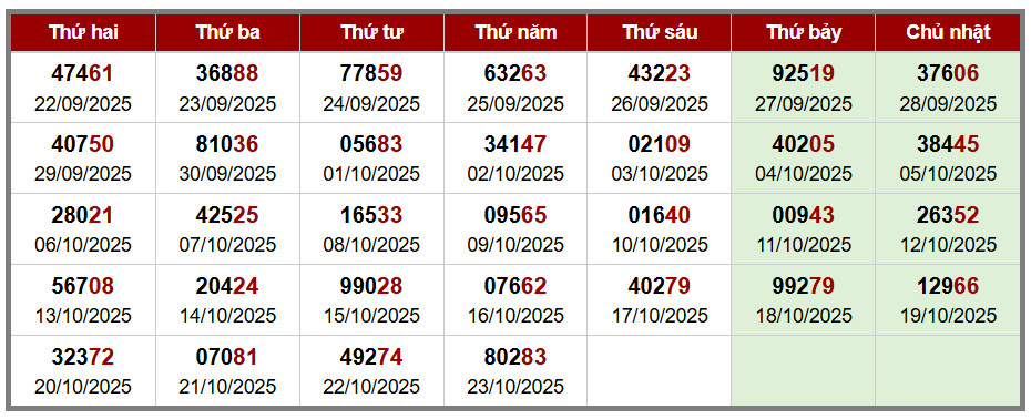 Các số đề chính xác đã ra được in màu ĐỎ – tính từ 01-10-2025