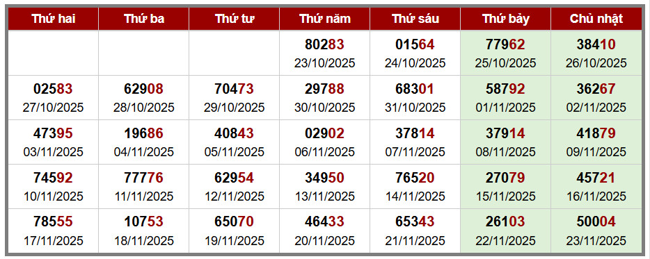 Các số đề chính xác đã ra được in màu ĐỎ – tính từ 01-11-2025