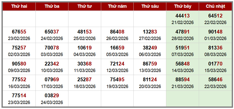 Các số đề chính xác đã ra được in màu ĐỎ – tính từ 01-02-2026