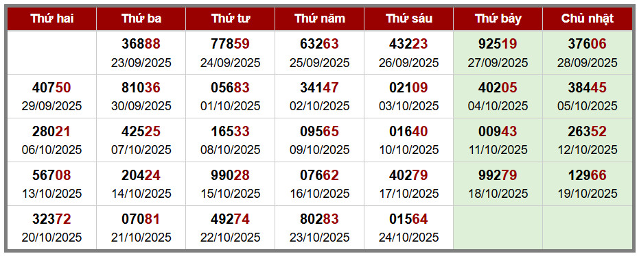 Các số đề chính xác đã ra được in màu ĐỎ – tính từ 01-10-2025