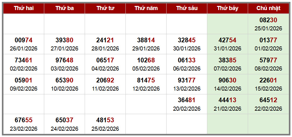 Các số đề chính xác đã ra được in màu ĐỎ – tính từ 01-02-2026