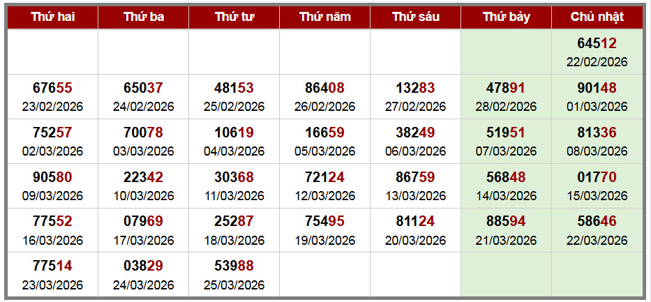 Các số đề chính xác đã ra được in màu ĐỎ – tính từ 01-03-2026