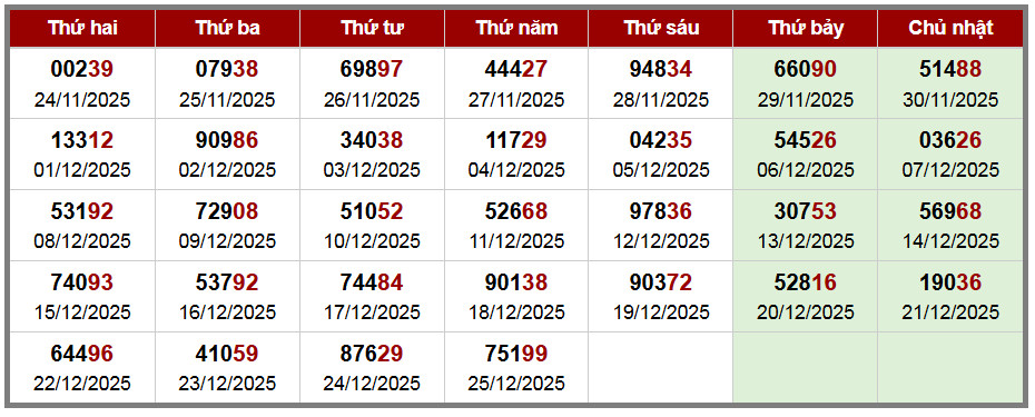 Các số đề chính xác đã ra được in màu ĐỎ – tính từ 01-12-2025