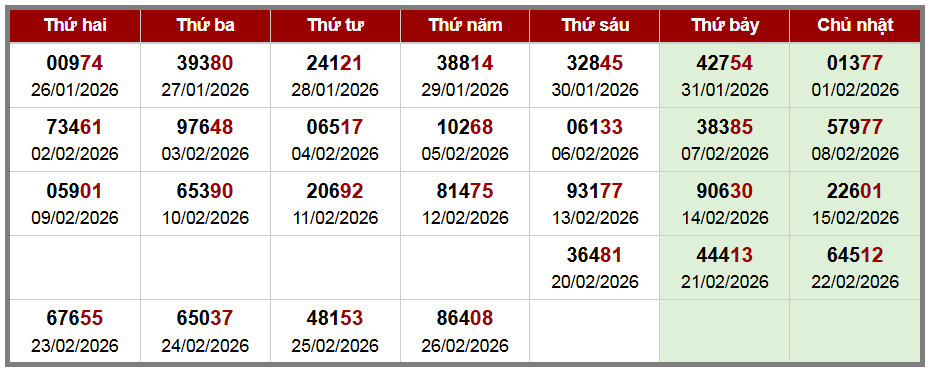 Các số đề chính xác đã ra được in màu ĐỎ – tính từ 01-02-2026