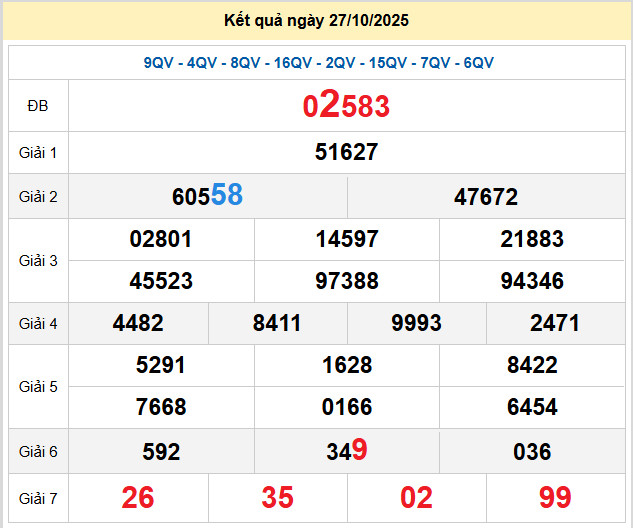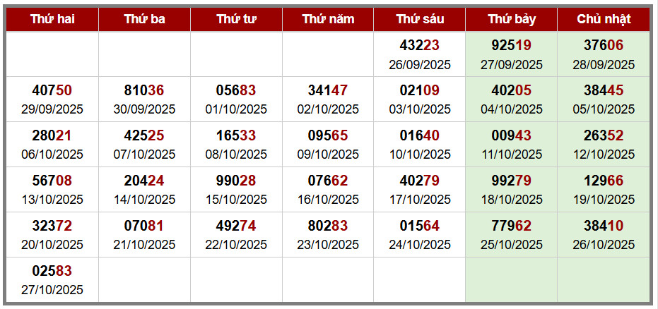 Các số đề chính xác đã ra được in màu ĐỎ – tính từ 01-10-2025