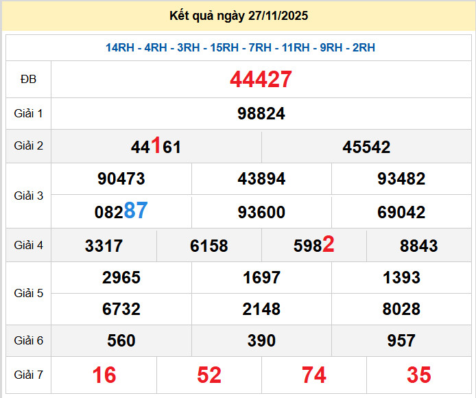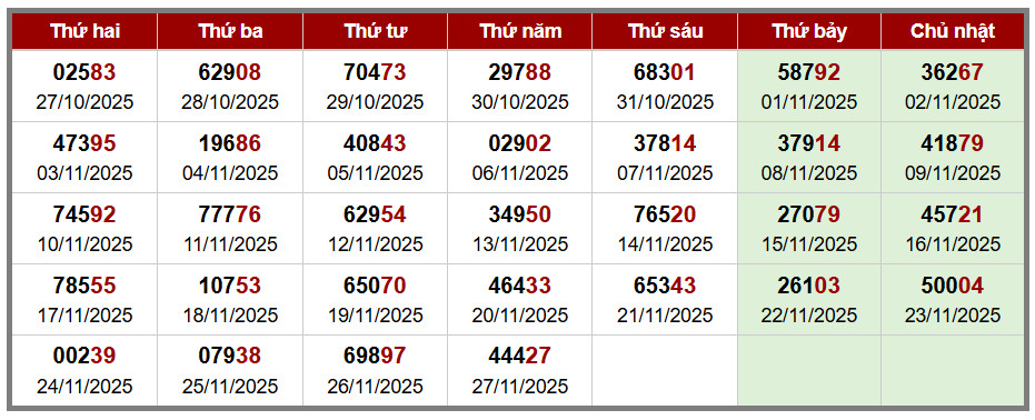 Các số đề chính xác đã ra được in màu ĐỎ – tính từ 01-11-2025