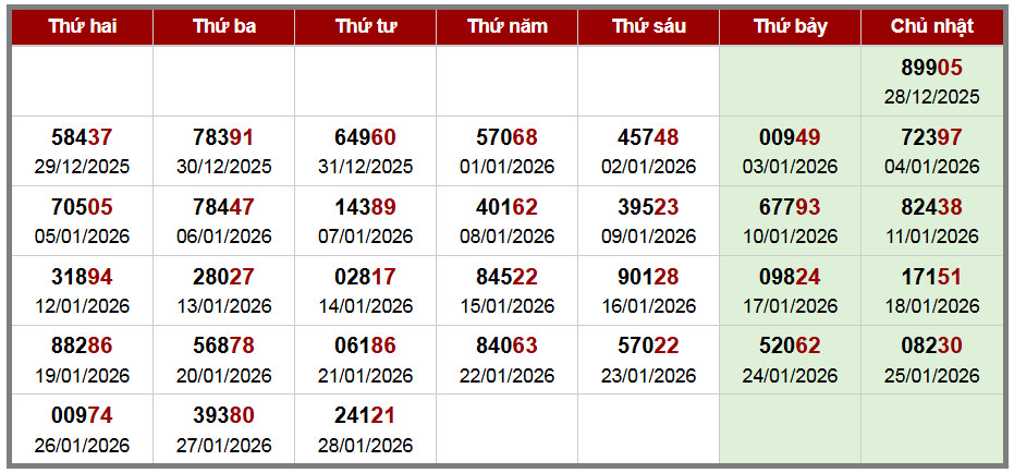 Các số đề chính xác đã ra được in màu ĐỎ – tính từ 01-01-2026