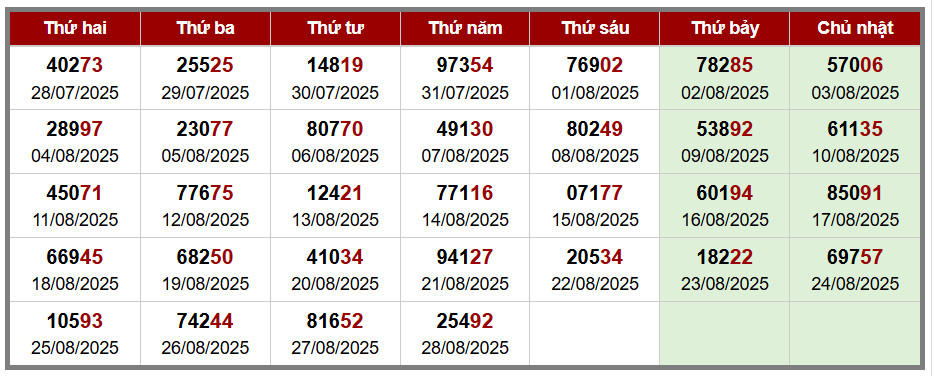 Các số đề chính xác đã ra được in màu ĐỎ – tính từ 01-08-2025