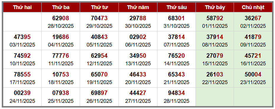 Các số đề chính xác đã ra được in màu ĐỎ – tính từ 01-11-2025