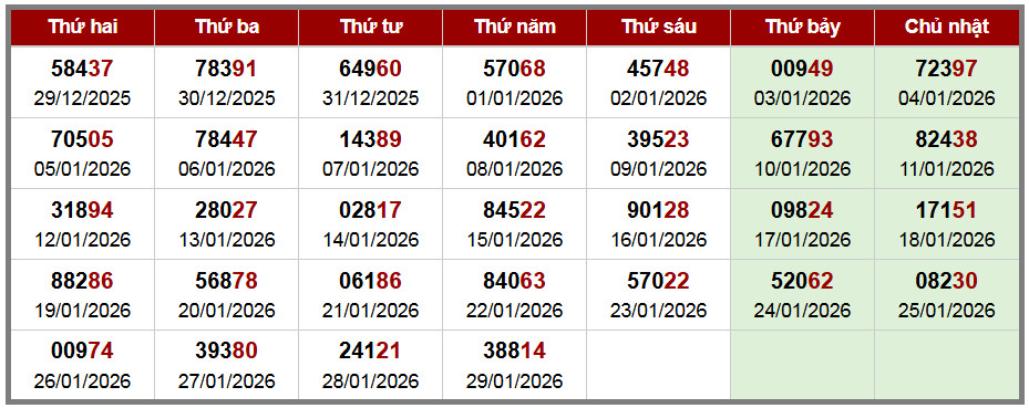 Các số đề chính xác đã ra được in màu ĐỎ – tính từ 01-01-2026