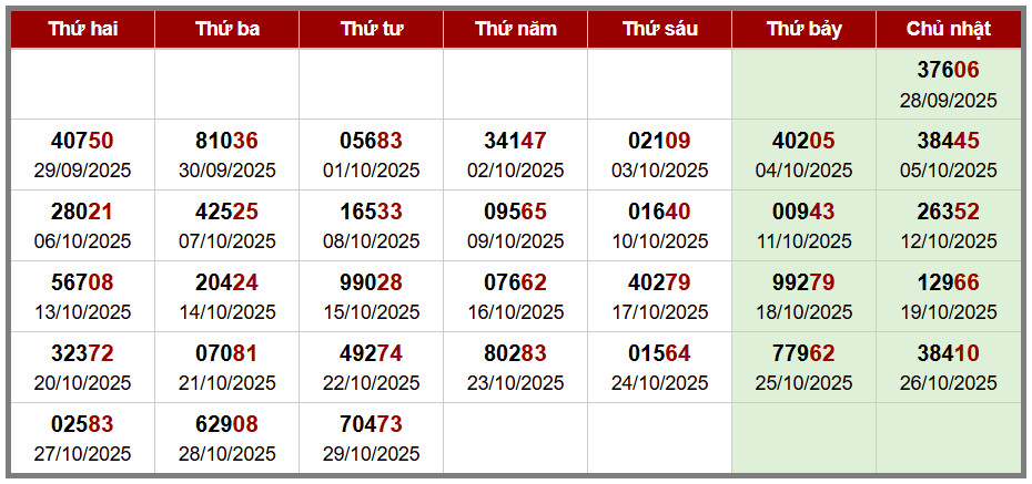 Các số đề chính xác đã ra được in màu ĐỎ – tính từ 01-10-2025