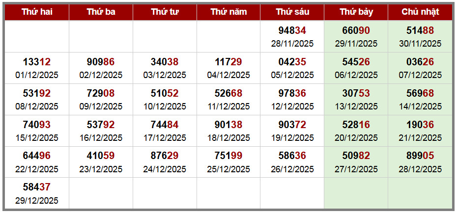 Các số đề chính xác đã ra được in màu ĐỎ – tính từ 01-12-2025