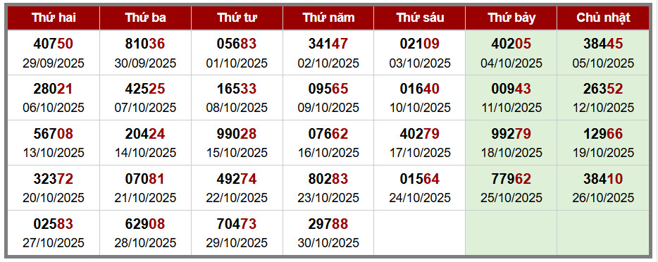 Các số đề chính xác đã ra được in màu ĐỎ – tính từ 01-10-2025