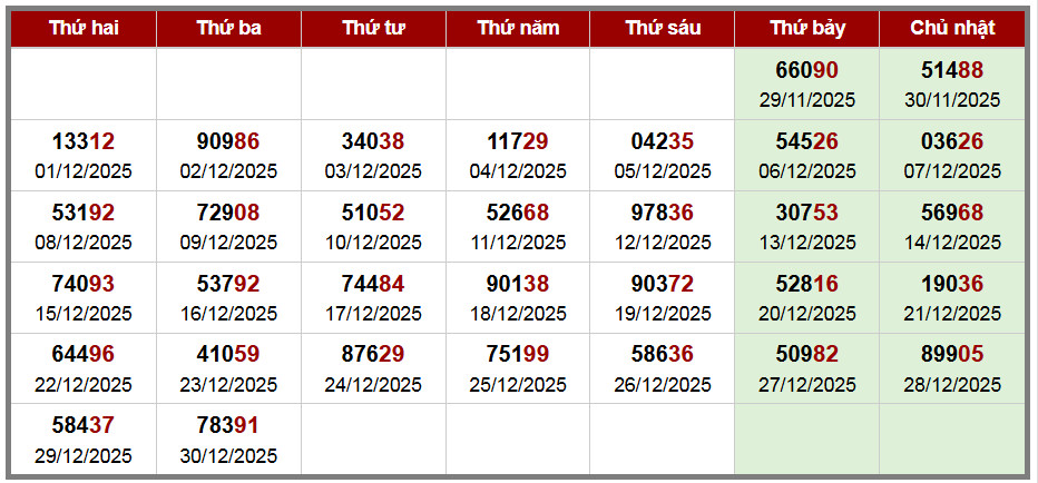 Các số đề chính xác đã ra được in màu ĐỎ – tính từ 01-12-2025
