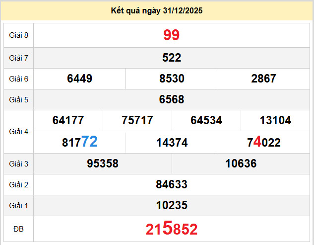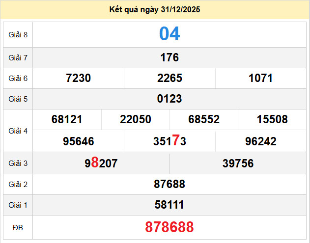 Chốt số XSDN 7-1-2026